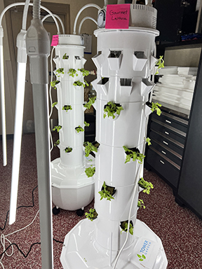 Tower Garden Growing Systems became partof Ag Instructor, Lara Hammerly's hands-on classroom experiences with this advanced form of aeroponics where plants are grown in an air or moist environment rather than soil.  It will be intergrated into classes such as Plant Science, Greenhouse Management & Landscape Design, Food Science and Ag Exploration.